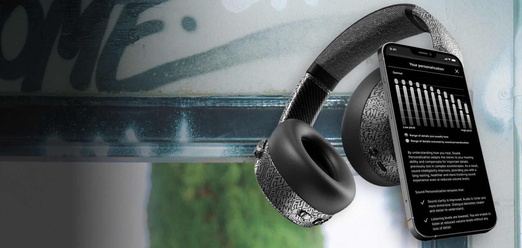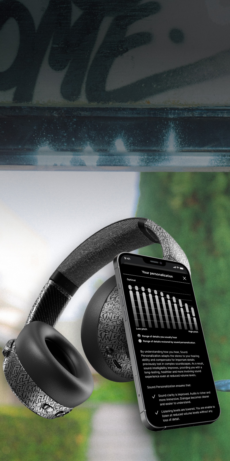 Mimiのパーソナルサウンドはあなた専用の理想的なサウンドへ補正します。Skull-iQアプリ内のパーソナルサウンドにてあなたの聴力を測定し、あなた専用の音質へと改善することで聞き取りづらかった音や今まで聞こえていなが聞こえるようなり新次元の音楽体験を味わえます。アプリ内での測定結果に基づきサウンドプロファイルが作成されヘッドホンへ直接保存されます。