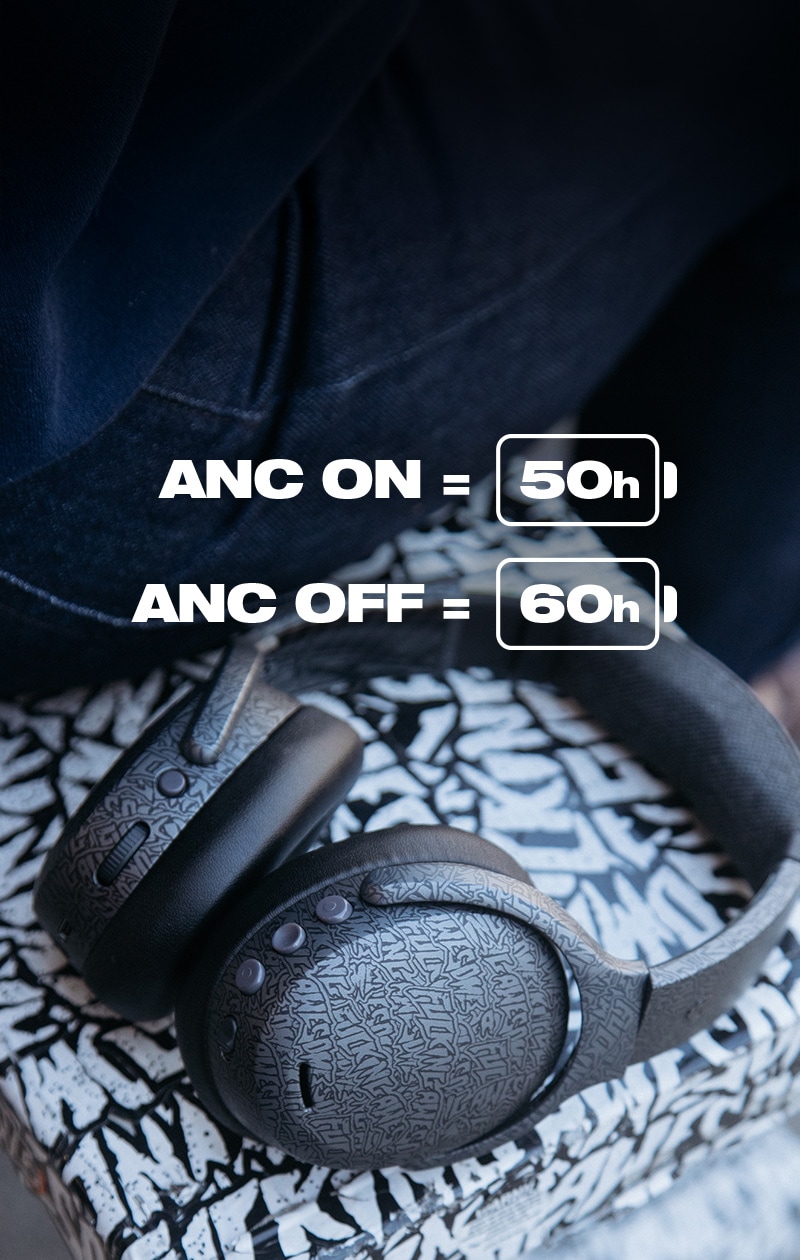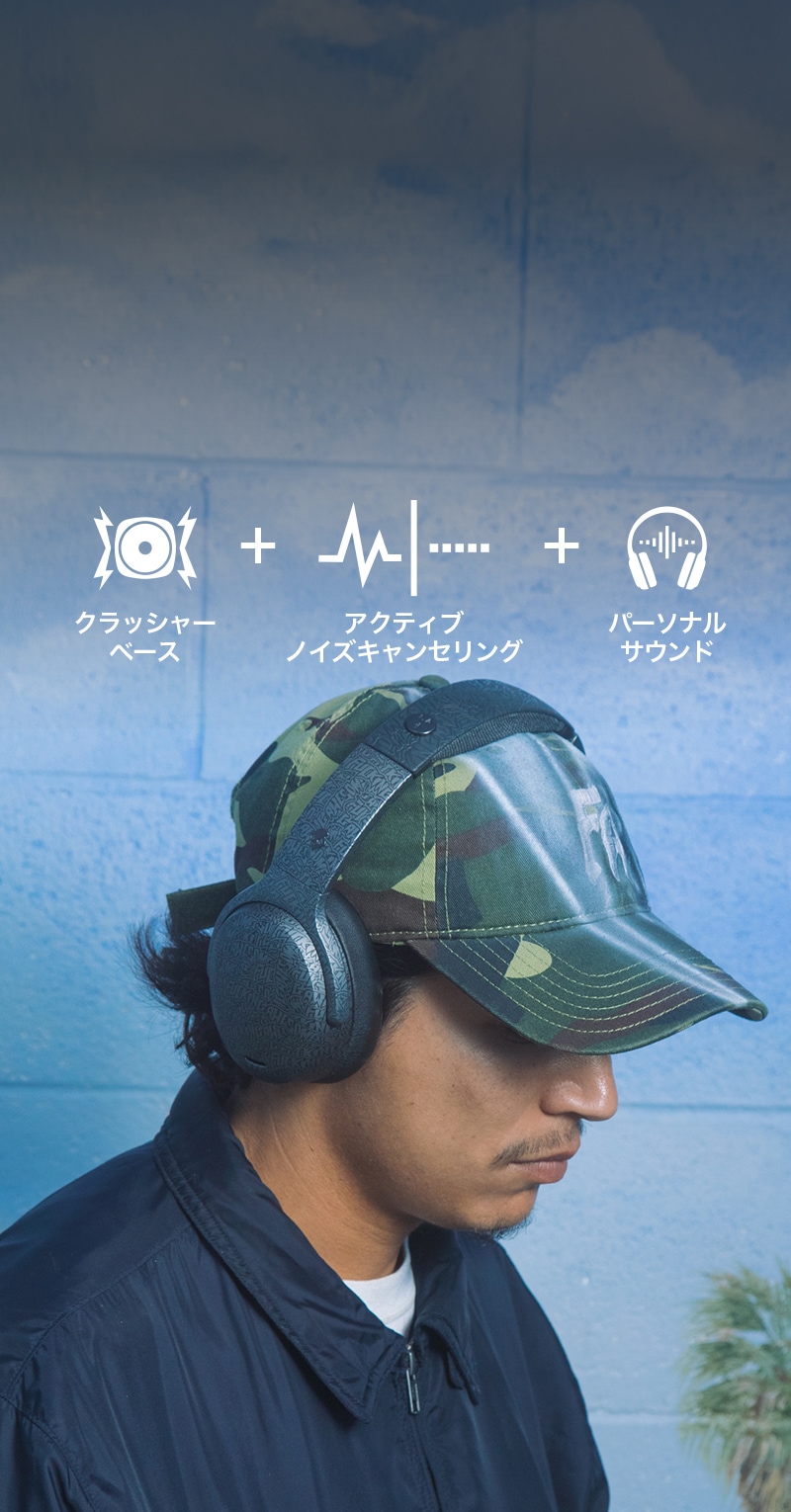 4マイクのANCを搭載し、装着した瞬間に周囲の騒音から開放され静かで快適な世界を提供します。新たにアプリでANCの強さを調整することが可能で、周囲の騒音環境に合わせて最適な設定ができます。Crusher ANC 2のANCは周囲の騒音を打ち消すだけでなく、ヘッドホン内部で振動するクラッシャーベースの反響音を打ち消し、クリアな高音と力強い重低音を響かせます。