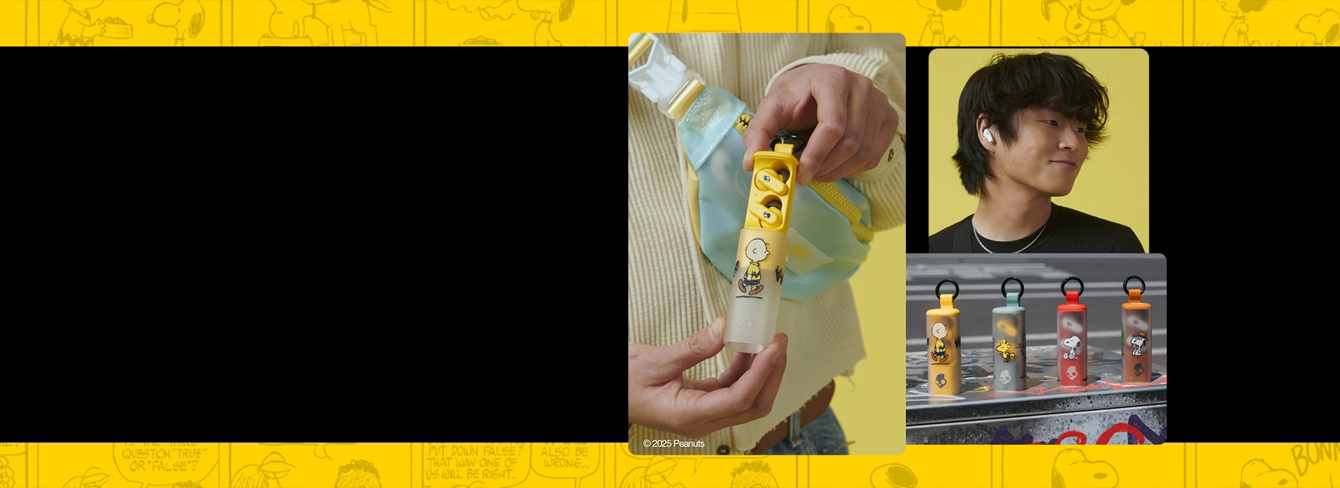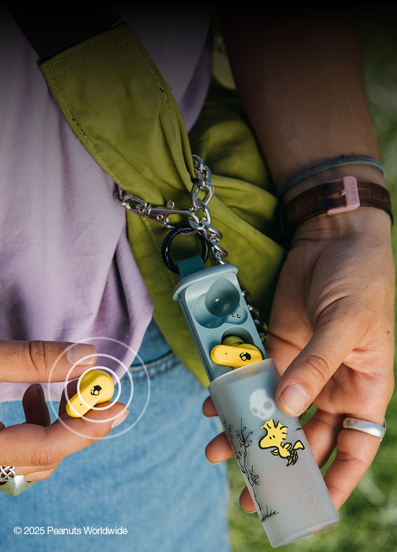 スヌーピー、ウッドストック、スパイク、そしてチャーリー・ブラウン。世界中で愛される仲間たちが、Skullcandyの人気モデル「Dime Evo」と出会い、ポップでユニークな限定コレクションとして登場します。“音楽をもっと自由に、もっと楽しく。