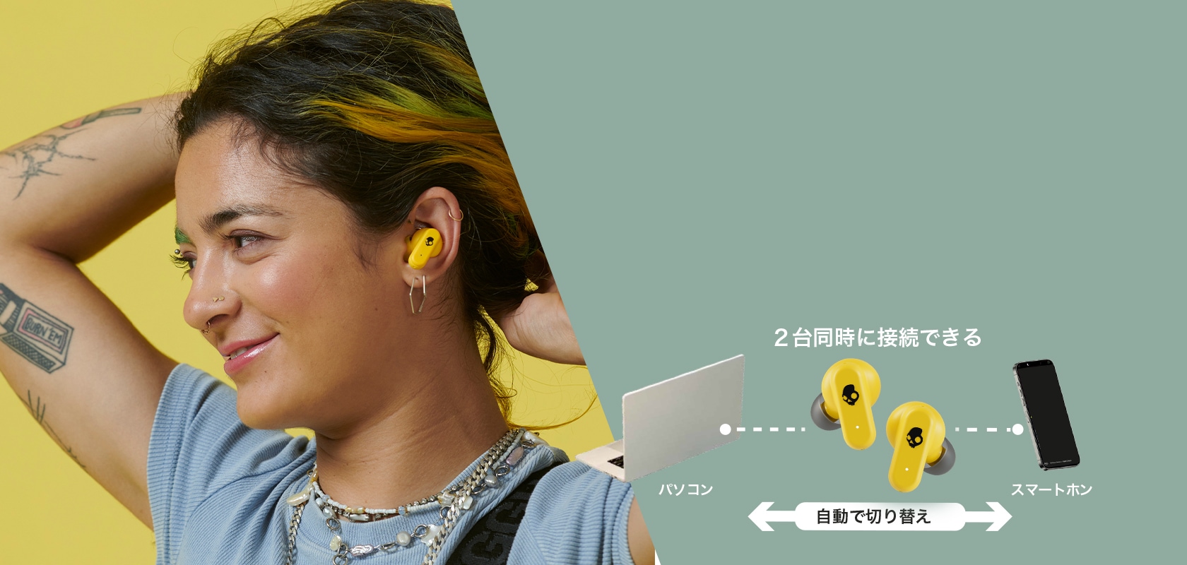 カラビナ付きの充電ケースは、パンツのベルトループやバックパックに簡単に取り付けられ、スマートに持ち運ぶことができます。イヤホンはサッと取り出せて、いつでもすぐに音楽を楽しめます。Skullcandyならではの迫力あるサウンドと、他にはない個性的なデザインが、おしゃれと自由をプラスしてくれます。さらに、専用アプリによるサウンド調整など、充実した機能も備えた、頼れるイヤホンです。