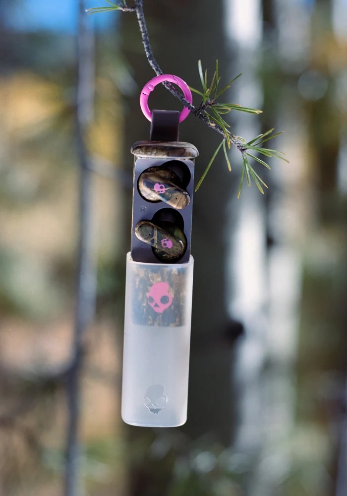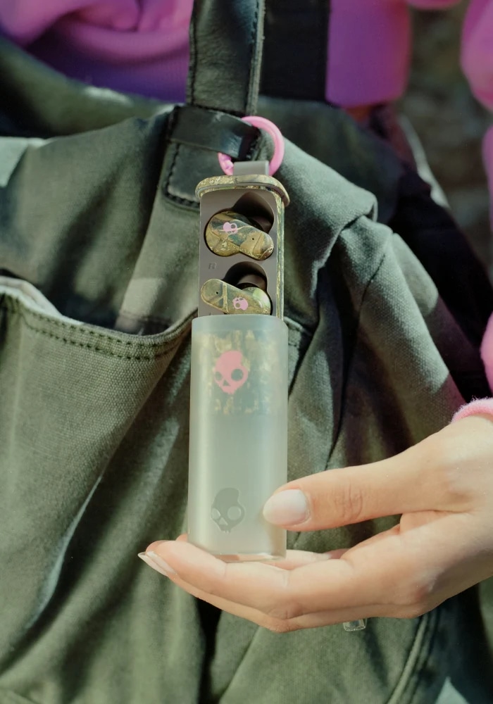 カラビナ付きの充電ケースは、パンツのベルトループやバックパックに簡単に取り付けられます。イヤホンはサッと取り出せて、いつでもすぐに音楽を楽しめます。